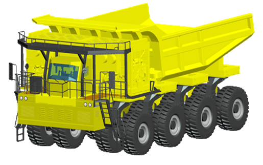 采用合能电驱动系统的新型节能多轴重型矿用自卸车,已经载重240吨进行了2000公里的路面各项试验,在内蒙古露天矿克服当地零下四十度的恶劣天气条件,每天分三班正式运行。该车采用4轴线、8个悬架、16×16全轮驱动、全轮转向等结构形式,综合运用了双发动机联合动力、多车轮独立电驱动技术、大行程液压悬架、摆动轴技术、箱型车架、液压制动和转向、远程监控自动诊断等先进技术,提高了车辆道路适应性,降低了道路维护频次和成本,延长了轮胎寿命,同时具有转弯半径小、机动性能好、供货周期短、采购及维护成本低等优点,别适应于大中型露天矿山开采运输和大型工程施工。